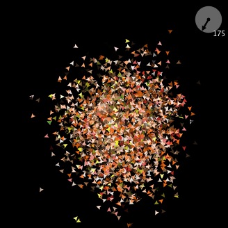 breed [ birds bird ] breed [ spinners spinner ] turtles-own [ age ] ;; makes a movie of the model; stops when there are 3000 turtles ;; and exports movie to a file to make-movie ;; prompt user for movie location user-message "First, save your new movie file (choose a name ending with .mov)" let path user-new-file if not is-string? path [ stop ] ;; stop if user canceled ;; run the model setup movie-start path movie-grab-view while [ count turtles < 3000 ] [ go movie-grab-view ] ;; export the movie movie-close user-message (word "Exported movie to " path) end to setup clear-all create-birds 1 create-spinner reset-ticks end to go ask birds [ wander grow-old reproduce ] tick update-spinner end to grow-old set age age + 1 end to wander rt random-float 90 fd 1 end to reproduce if (age > 10 and random 10 > 7) [ hatch 2 [ set color color - 4 + random 10 set age 0 ] die ] end ;; make the spinner for the upper right hand corner to create-spinner create-spinners 1 [ set shape "clock" setxy (max-pxcor - 3) (max-pycor - 3) set color gray - 1.5 set size 6 set heading 0 set label 0 ] end to update-spinner ask spinners [ set heading ticks * 30 set label ticks ] end ; Public Domain: ; To the extent possible under law, Uri Wilensky has waived all ; copyright and related or neighboring rights to this model.