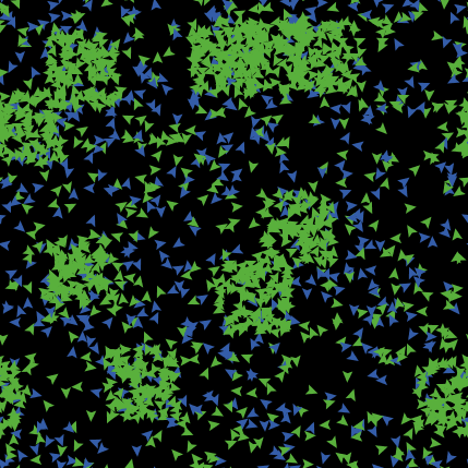 Now press the SET-TRANSPARENCY button which will retain the current color of the turtles and add the transparency indicated in the slider. Take note of the clusters again.