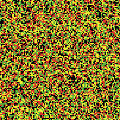 globals [ ;; By always keeping track of how much sand is on the table, we can compute the ;; average number of grains per patch instantly, without having to count. total ;; We don't want the average monitor to updating wildly, so we only have it ;; update every tick. total-on-tick ;; Keep track of avalanche sizes so we can histogram them sizes ;; Size of the most recent run last-size ;; Keep track of avalanche lifetimes so we can histogram them lifetimes ;; Lifetime of the most recent run last-lifetime ;; The patch the mouse hovers over while exploring selected-patch ;; These colors define how the patches look normally, after being fired, and in ;; explore mode. default-color fired-color selected-color ] patches-own [ ;; how many grains of sand are on this patch n ;; A list of stored n so that we can easily pop back to a previous state. See ;; the NETLOGO FEATURES section of the Info tab for a description of how stacks ;; work n-stack ;; Determines what color to scale when coloring the patch. base-color ] ;; The input task says what each patch should do at setup time ;; to compute its initial value for n. (See the Tasks section ;; of the Programming Guide for information on tasks.) to setup [setup-task] clear-all set default-color blue set fired-color red set selected-color green set selected-patch nobody ask patches [ set n runresult setup-task set n-stack [] set base-color default-color ] let ignore stabilize false ask patches [ recolor ] set total sum [ n ] of patches ;; set this to the empty list so we can add items to it later set sizes [] set lifetimes [] reset-ticks end ;; For example, "setup-uniform 2" gives every patch a task which reports 2. to setup-uniform [initial] setup task [ initial ] end ;; Every patch uses a task which reports a random value. to setup-random setup task [ random 4 ] end ;; patch procedure; the colors are like a stoplight to recolor set pcolor scale-color base-color n 0 4 end to go let drop drop-patch if drop != nobody [ ask drop [ update-n 1 recolor ] let results stabilize animate-avalanches? let avalanche-patches first results let lifetime last results ;; compute the size of the avalanche and throw it on the end of the sizes list if any? avalanche-patches [ set sizes lput (count avalanche-patches) sizes set lifetimes lput lifetime lifetimes ] ;; Display the avalanche and guarantee that the border of the avalanche is updated ask avalanche-patches [ recolor ask neighbors4 [ recolor ] ] display ;; Erase the avalanche ask avalanche-patches [ set base-color default-color recolor ] ;; Updates the average monitor set total-on-tick total tick ] end to explore ifelse mouse-inside? [ let p patch mouse-xcor mouse-ycor set selected-patch p ask patches [ push-n ] ask selected-patch [ update-n 1 ] let results stabilize false ask patches [ pop-n ] ask patches [ set base-color default-color recolor ] let avalanche-patches first results ask avalanche-patches [ set base-color selected-color recolor ] display ] [ if selected-patch != nobody [ set selected-patch nobody ask patches [ set base-color default-color recolor ] ] ] end ;; Stabilizes the sandpile. Reports which sites fired and how many iterations it took to ;; stabilize. to-report stabilize [animate?] let active-patches patches with [ n > 3 ] ;; The number iterations the avalanche has gone for. Use to calculate lifetimes. let iters 0 ;; we want to count how many patches became overloaded at some point ;; during the avalanche, and also flash those patches. so as we go, we'll ;; keep adding more patches to to this initially empty set. let avalanche-patches no-patches while [ any? active-patches ] [ let overloaded-patches active-patches with [ n > 3 ] if any? overloaded-patches [ set iters iters + 1 ] ask overloaded-patches [ set base-color fired-color ;; subtract 4 from this patch update-n -4 if animate? [ recolor ] ;; edge patches have less than four neighbors, so some sand may fall off the edge ask neighbors4 [ update-n 1 if animate? [ recolor ] ] ] if animate? [ display ] ;; add the current round of overloaded patches to our record of the avalanche ;; the patch-set primitive combines agentsets, removing duplicates set avalanche-patches (patch-set avalanche-patches overloaded-patches) ;; find the set of patches which *might* be overloaded, so we will check ;; them the next time through the loop set active-patches patch-set [ neighbors4 ] of overloaded-patches ] report (list avalanche-patches iters) end ;; patch procedure. input might be positive or negative, to add or subtract sand to update-n [ how-much ] set n n + how-much set total total + how-much end to-report drop-patch if drop-location = "center" [ report patch 0 0 ] if drop-location = "random" [ report one-of patches ] if drop-location = "mouse-click" and mouse-down? [ every 0.3 [ report patch mouse-xcor mouse-ycor ] ] report nobody end ;; Save the patches state to push-n ;; patch procedure set n-stack fput n n-stack end ;; restore the patches state to pop-n ;; patch procedure ; need to go through update-n to keep total statistic correct update-n ((first n-stack) - n) set n-stack but-last n-stack end ; Public Domain: ; To the extent possible under law, Uri Wilensky has waived all ; copyright and related or neighboring rights to this model.