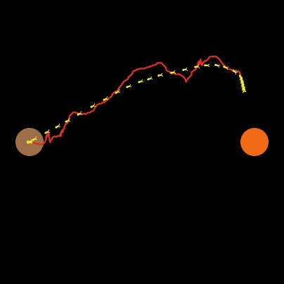 Even though the leader may take a very circuitous path towards the food, the ant trail, surprisingly, adopts a smooth shape. While it is not yet clear if this model is a biologically accurate model of ant behavior, it is an interesting mathematical exploration of the emergent behavior of a series of agents following each other serially.